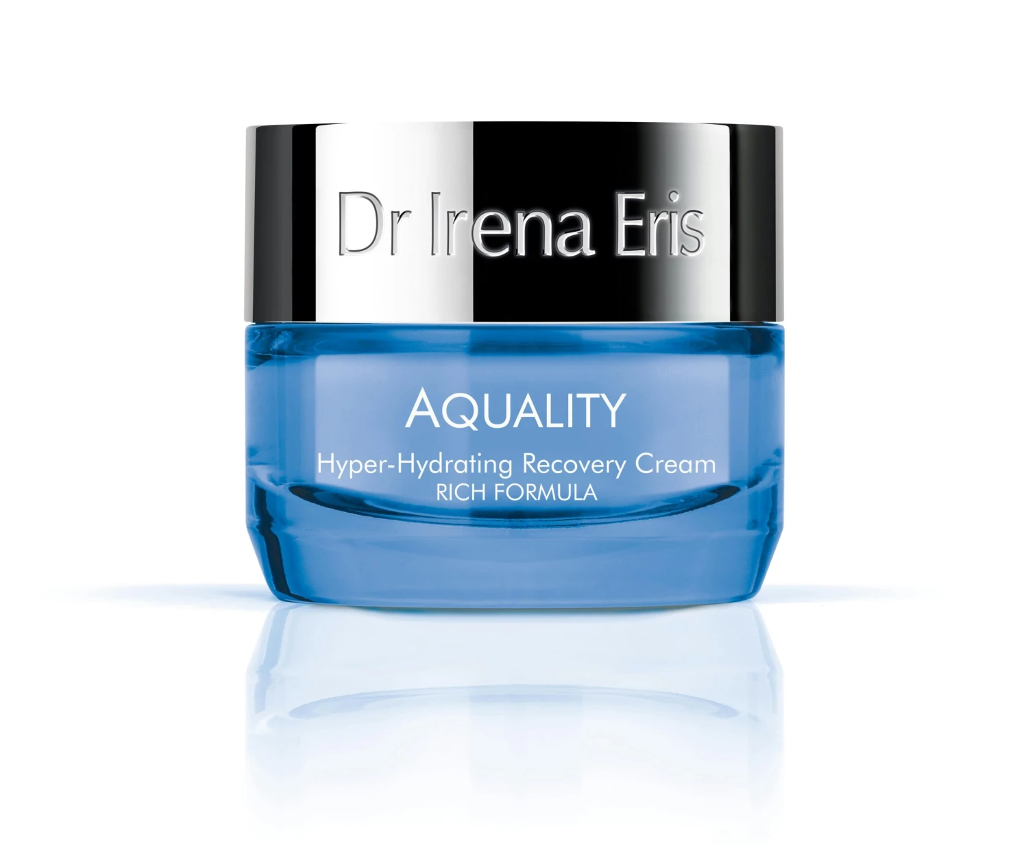 AQUALITY Hyper-Hydrating Recovery Cream är en revolutionerande ansiktskräm från varumärket Dr. Irena Eris. Denna rika och näringsrika kräm är speciellt utvecklad för att bekämpa olika typer av rynkor och ge intensiv fukt till huden. Med sin innovativa ingrediens, gamma-polyglutaminsyra (γ PGA), är denna kräm hela 5 gånger mer effektiv som fuktighetskräm än hyaluronsyra.