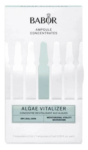 Babor Algae Vitalizer ger din hud intensiv fukt och förnyelse, med havets naturliga krafter. Ampullerna innehåller extrakt av planktonalger, som ger intensiv fukt och förnyat liv till huden på en torr hud. Innehållet av antioxidanter vårdar och skyddar huden mot fria radikaler och ger en föryngrande energikick.