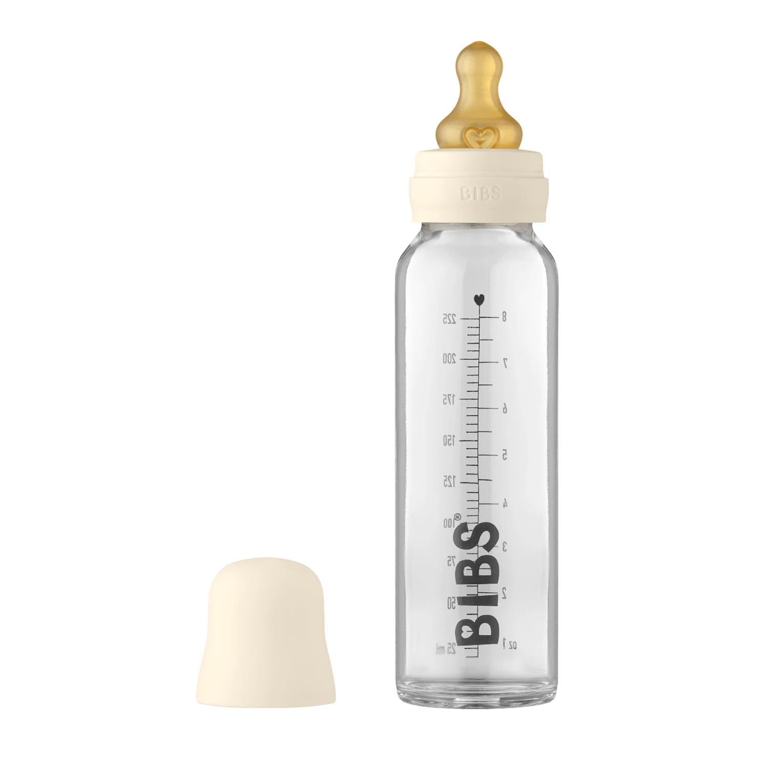Investera i BIBS Baby Glasflaska Komplett Set Latex Ivory och ge din bebis den bästa sugupplevelsen.
