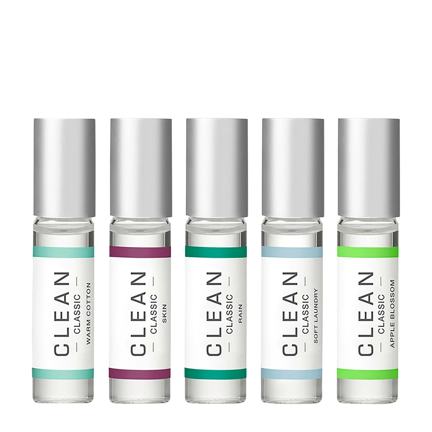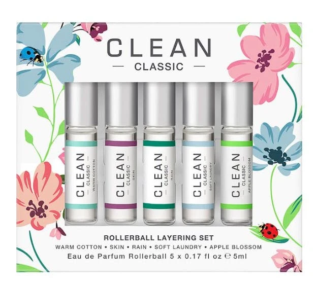 De 5 dofterna i setet är ”Warm Cotton”, ”Skin”, ”Rain”, ”Soft Laundry” och ”Apple Blossom”. Rollerball-dofterna är lätta att applicera och perfekta att ha med på resan, och Clean Rollerball Layering Gift Set EDP är en perfekt present till alla som älskar att experimentera med dofter och skapa sin egen personliga stil.