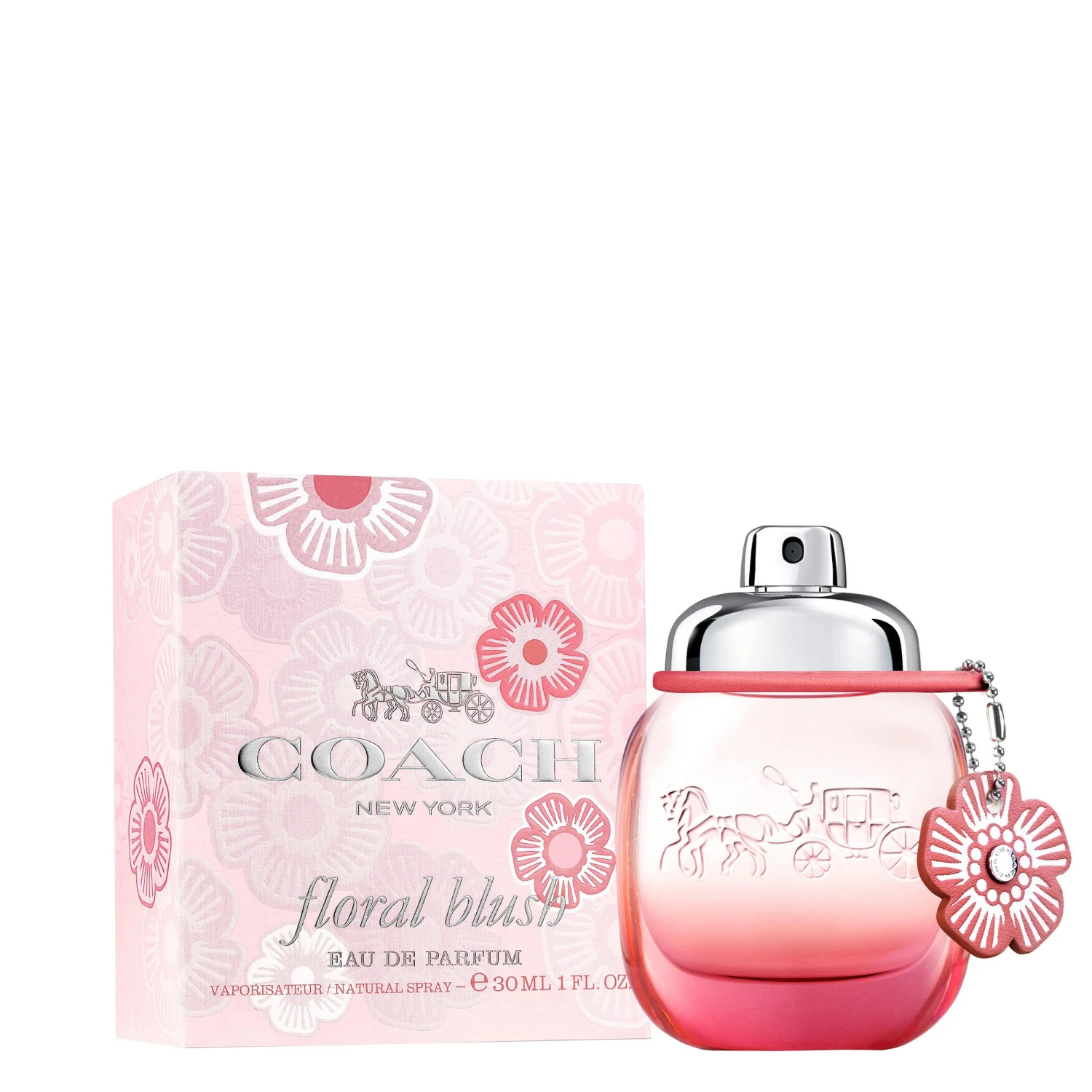 Men det slutar inte där. Coach Floral Blush är mer än bara en doft. Den vackra flaskan är inspirerad av Coach’s karaktäristiska design och är en hyllning till märkets ikoniska stil. Den ovala flaskan med den låsformade korken och sprayen är en hälsning till Coach-väskorna från 1954, medan Coach’s hästdroska är präglad i glaset som en symbol för märkets hantverkskunnande.