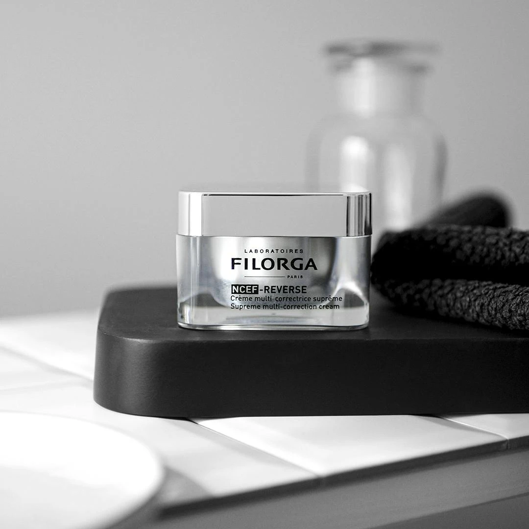 Upplev en multikorrigerande anti-aging kräm som fungerar effektivt mot rynkor, fina linjer och ger din hud förbättrad fasthet. Filorga NCEF-Reverse Cream är en vitaliserande kräm som innehåller en hög dos av NCEF-komplexet, som hjälper till att förstärka hudens ungdomliga utseende, förnya hudkvaliteten, strama upp, ge lyster och minimera alla rynkor och fina linjer.