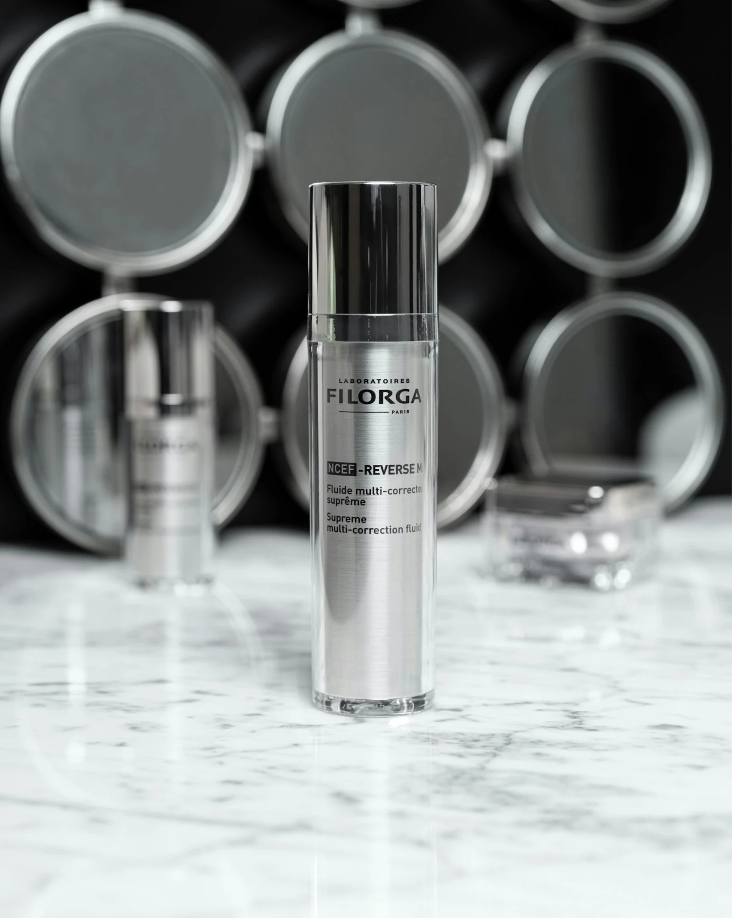 Filorga NCEF-Reverse Mat Fluid innehåller även en kombination av beprövade ingredienser som motverkar ålderstecken för en förstärkt effekt. Krämen fyller effektivt ut rynkor, ljusar upp pigmentfläckar, stramar upp lös hud och minskar stora porer för att lämna huden slät, jämn, fast och matt med en ungdomlig lyster. Denna regenererande ansiktskräm är för dig som vill ha synliga resultat!