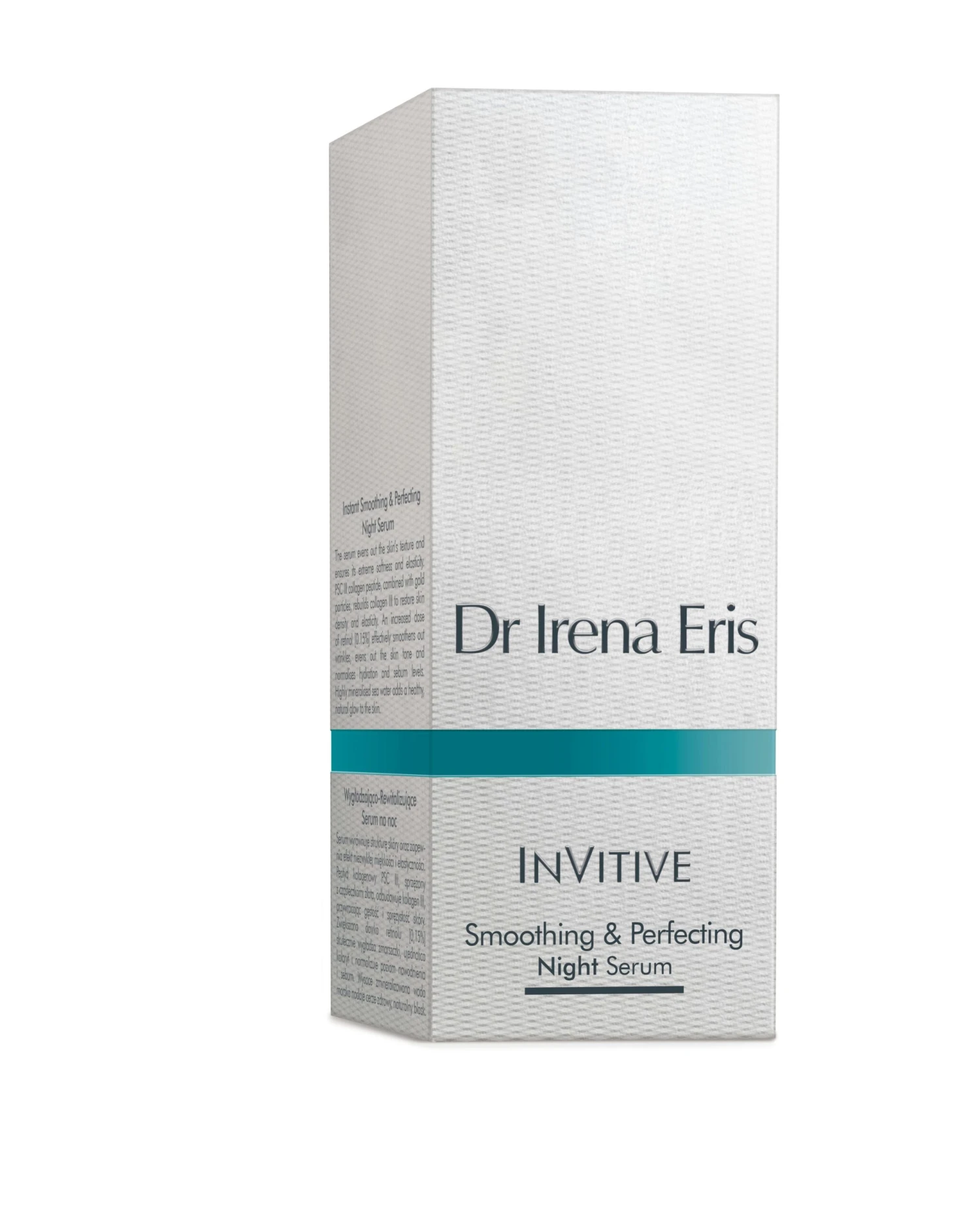 Invitive Smoothing & Perfecting Night Serum är en del av Dr. Irena Eris exklusiva sortiment av skönhetsprodukter. Med denna serum kan du uppnå en mer enhetlig och strålande hudton, samtidigt som den hjälper till att minska synligheten av fina linjer och rynkor.