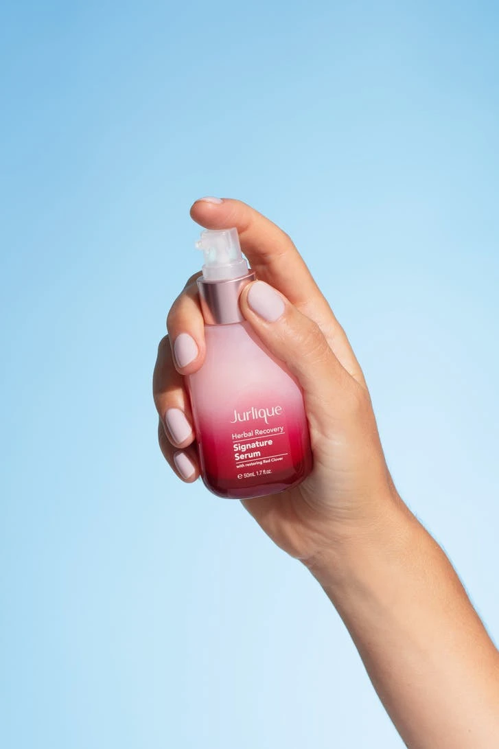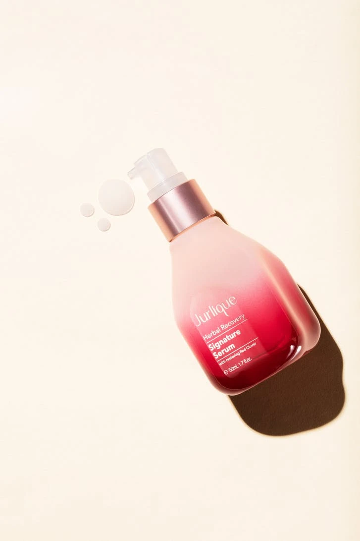 Herbal Recovery Signature Serum är ett extraordinärt serum som skyddar och stramar upp huden, samtidigt som spänsten ökar och huden uppnår en fräsch lyster med en ensartad hudton. Har ett högt innehåll av det antioxidantrika viola tricolor och föryngrande röllikaextrakt samt hyaluronsyraliknande rödklöver. Innehåller dessutom japanskt cederträ och extrakt från bokträets knoppar, extrakt från Meadowfoam Seed Oil samt läkemalvans rödder gör att huden känns fastare och mer hydrerad. Slutligen hjälper den nya Advanced Gel-teknologien med att förbättra hudens förmåga att uppta serummet. 100% ekologisk. Passar alla hudtyper.