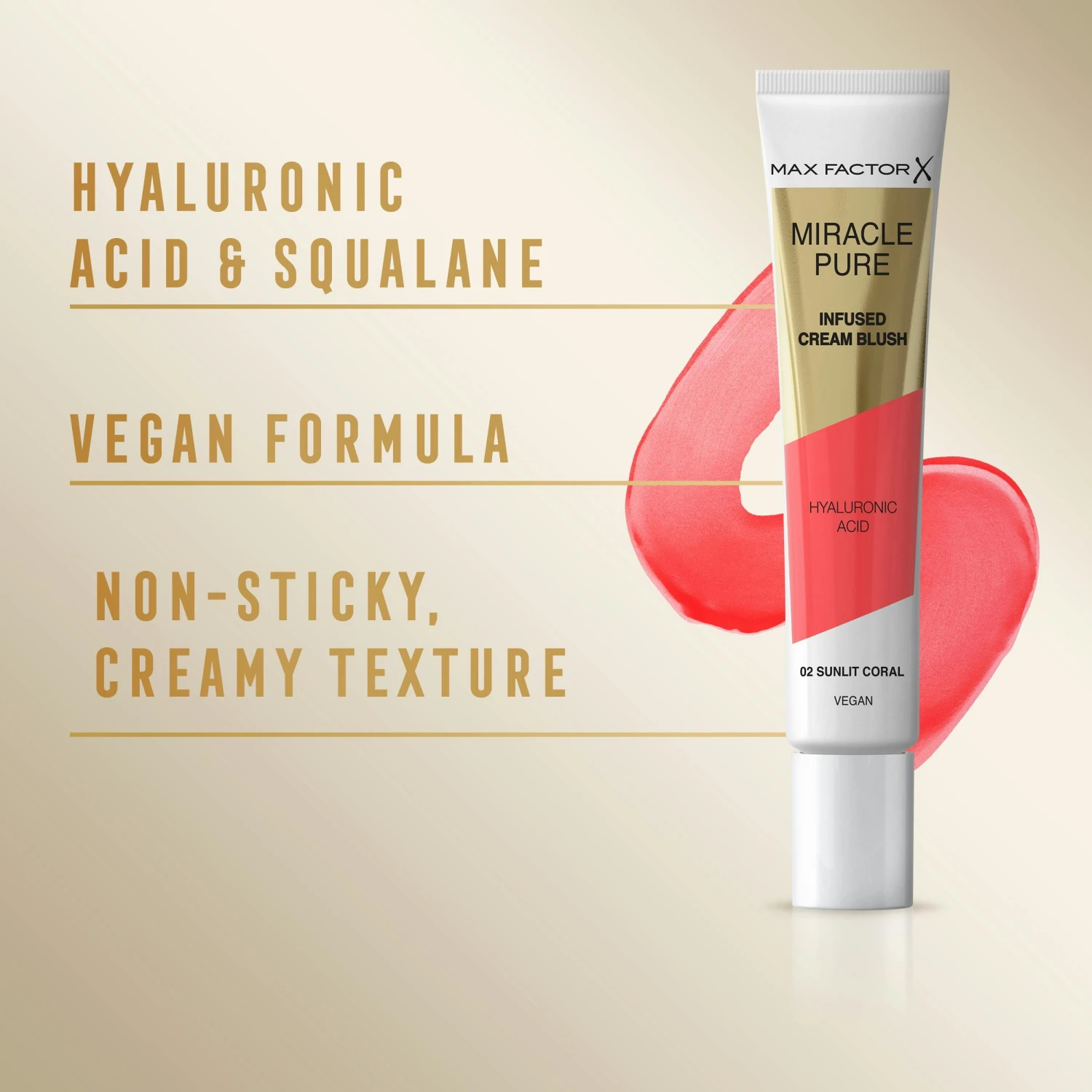 Få friska, rosa kinder och vårda din hud med Miracle Pure Cream Blush 02 Sunlit Coral från Max Factor. Gör dig redo att stråla och känna dig fantastisk!