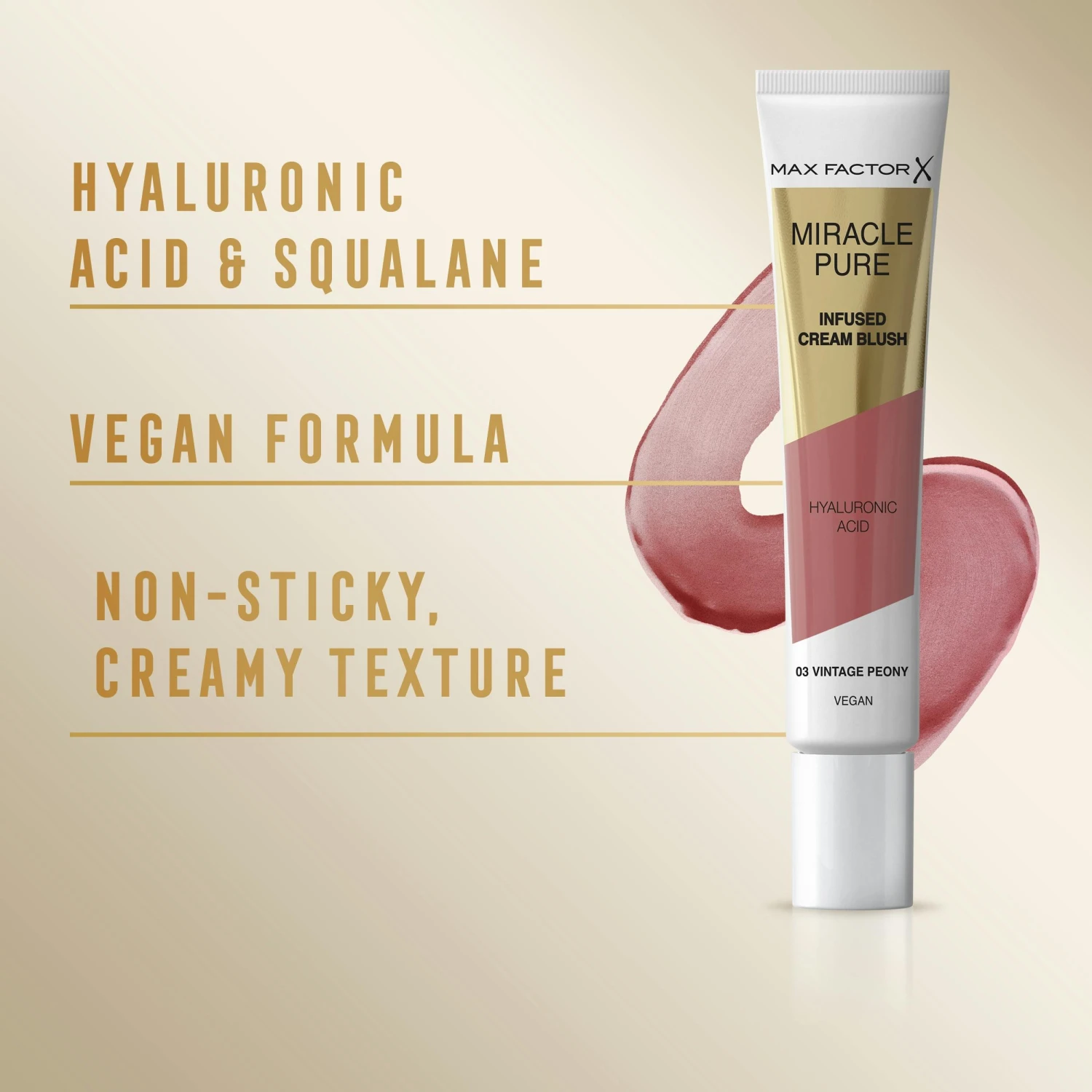 Miracle Pure Cream Blush 03 Vintage Peony från Max Factor är en fantastisk rouge som ger dig friska och rosa kinder samtidigt som den vårdar din hud. Denna rouge är perfekt för att ge en touch av fräschhet och lyster till ditt ansikte.