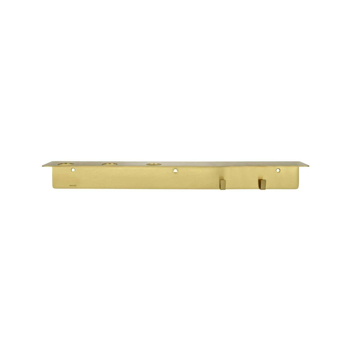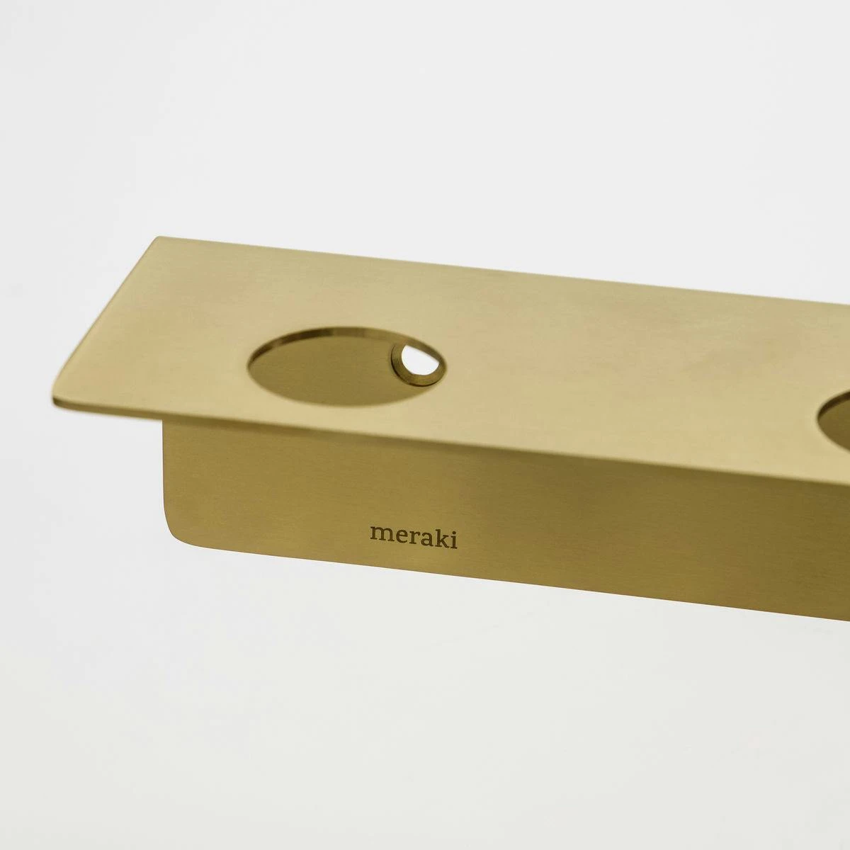 Frigör utrymme och ge ditt badrum en snygg uppdatering med denna flaskhängare med krokar. Det finns plats för tre hängande flaskor, produkter på hyllan ovanför och andra tillbehör på krokarna. Det rostfria stålet har fått en elegant yta i borstad mässing som inte låter något vatten tränga in. Oavsett om du placerar den i duschen eller på badrumsväggen blir denna flaskhängare från Meraki en smart uppgradering av ditt badrum.