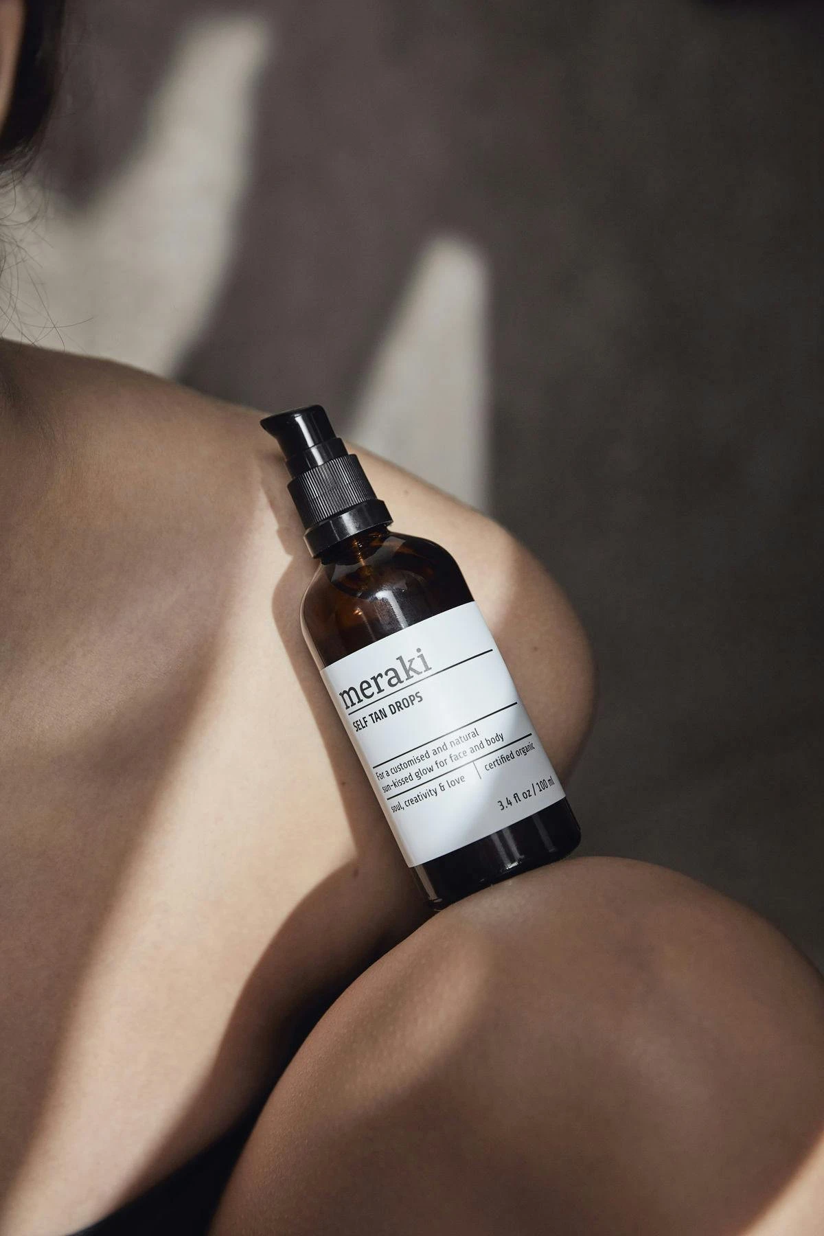 Dropparna kan användas i ansiktet och på kroppen. Innan du applicerar kan du använda en skrubb eller exfolierande handske för att ta bort döda hudceller, vilket ger dig en jämn färg. För knän, armbågar och hälar kan du tillsätta lite lotion innan du använder dropparna för att återfukta huden och se till att den absorberar dropparna bättre i dessa områden.