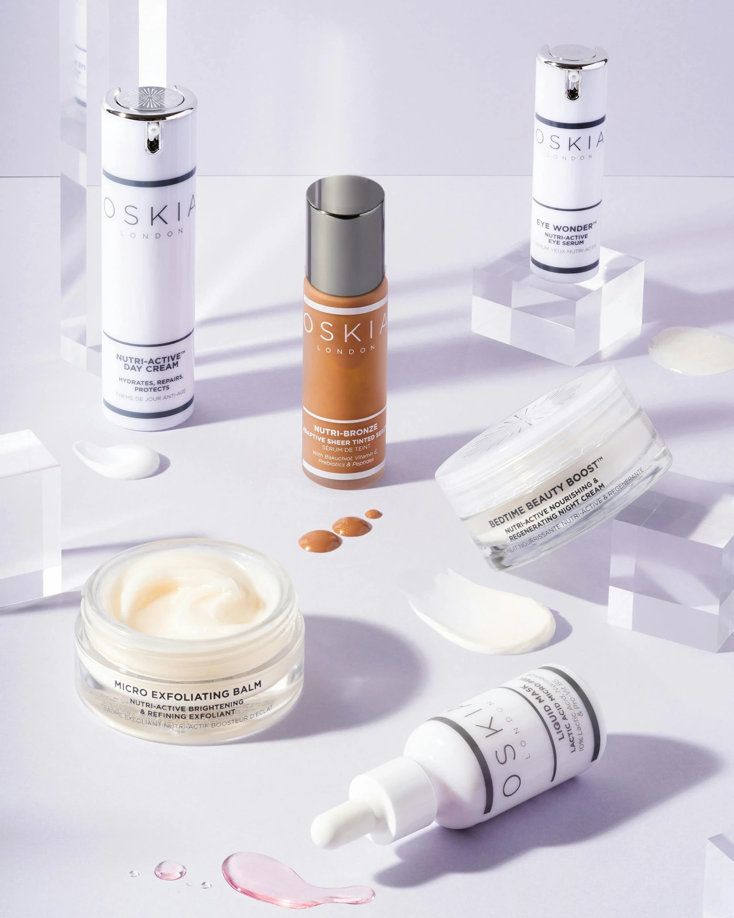 Oskia Nutri-Active Bronzing Serum innehåller bakuchiol, hyaluronsyra och äppelstamceller, som förbättrar hudtonen och tillför fukt. Dessutom innehåller serumet Pro-vitamin B5, MSM och mjölkpeptider som har lugnande och skyddande egenskaper.