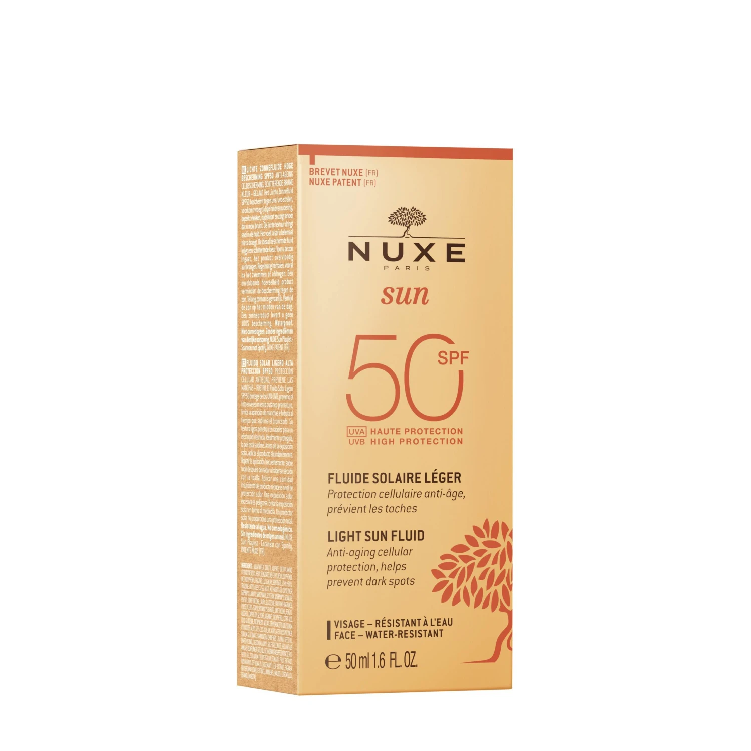 Sun Light Fluid Spf 50 är en lätt solvätska för ansiktet som skyddar huden mot solens strålar samt förhindrar cellulärt fotoåldrande. Berikad med ett vattenhyacintextrakt som med sin vattenavvisande formula stärker hudbarriären för att skydda mot de-hydrering och för att förbättra solbrännan. Dess ultra-praktiska fickformat är designad för att skakas innan användning för att ge en lätt struktur med ”naken hud” effekt som inte kladdar. Perfekt för normal och blandad hud. Dess vattenavvisande formula är även en förnöjelse för sinnena tack vare sin oemotståndliga doft med noter av tahitigardenia och vanilj.