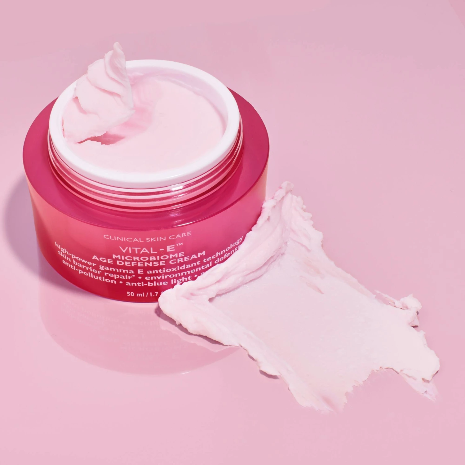 Vital-E Microbiome Age Defence Cream är en fuktkräm som reparerar och hjälper till att stärka hudens skyddsbarriär samtidigt som den förbättrar elasticiteten i huden och ger nytt liv till matt, livlös och trött hud. Krämen har en Anti-age effekt med aktiva ämnen som motverkar rynkor och fina linjer samt skyddar huden mot skadliga ämnen i miljön som har en åldrande påverkan på huden.