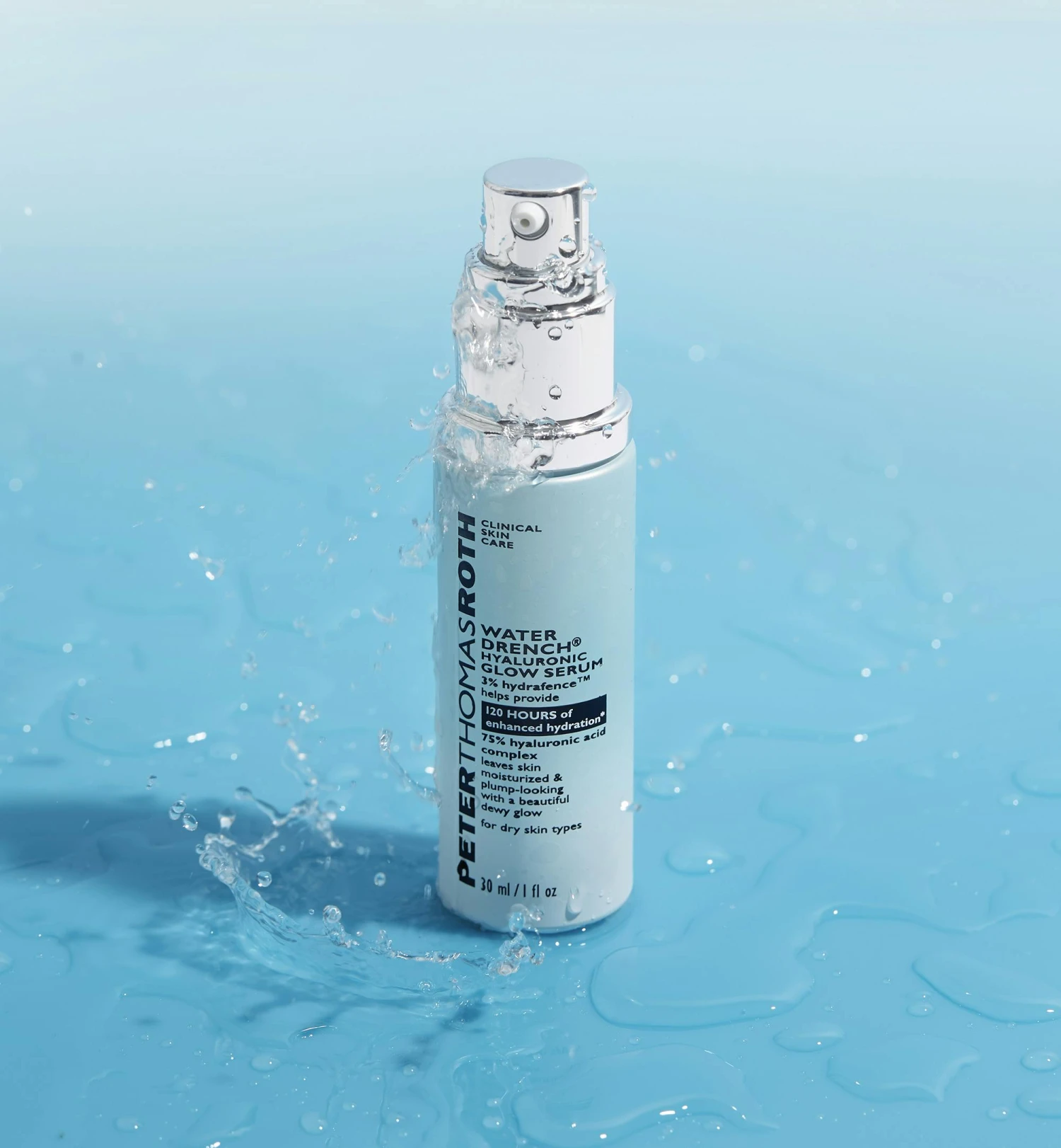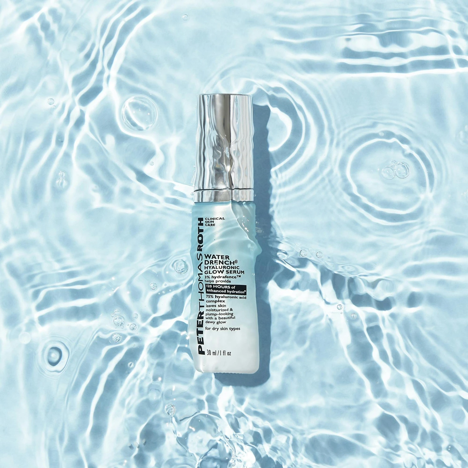 Behöver din hy en intensiv återfuktning och ett nytt glow? Då är det Peter Thomas Roth Water Drench Hyaluronic Glow Serum du ska lägga dina händer på! Detta serum innehåller 75% hyaluronsyra-komplex som bidrar till att bevara hudens fuktbalans, förbättrar hudens struktur samt minimerar rynkor och fina linjer. Detta serum ger torr hud nödvändig fukt och din hud ett helt nytt liv.