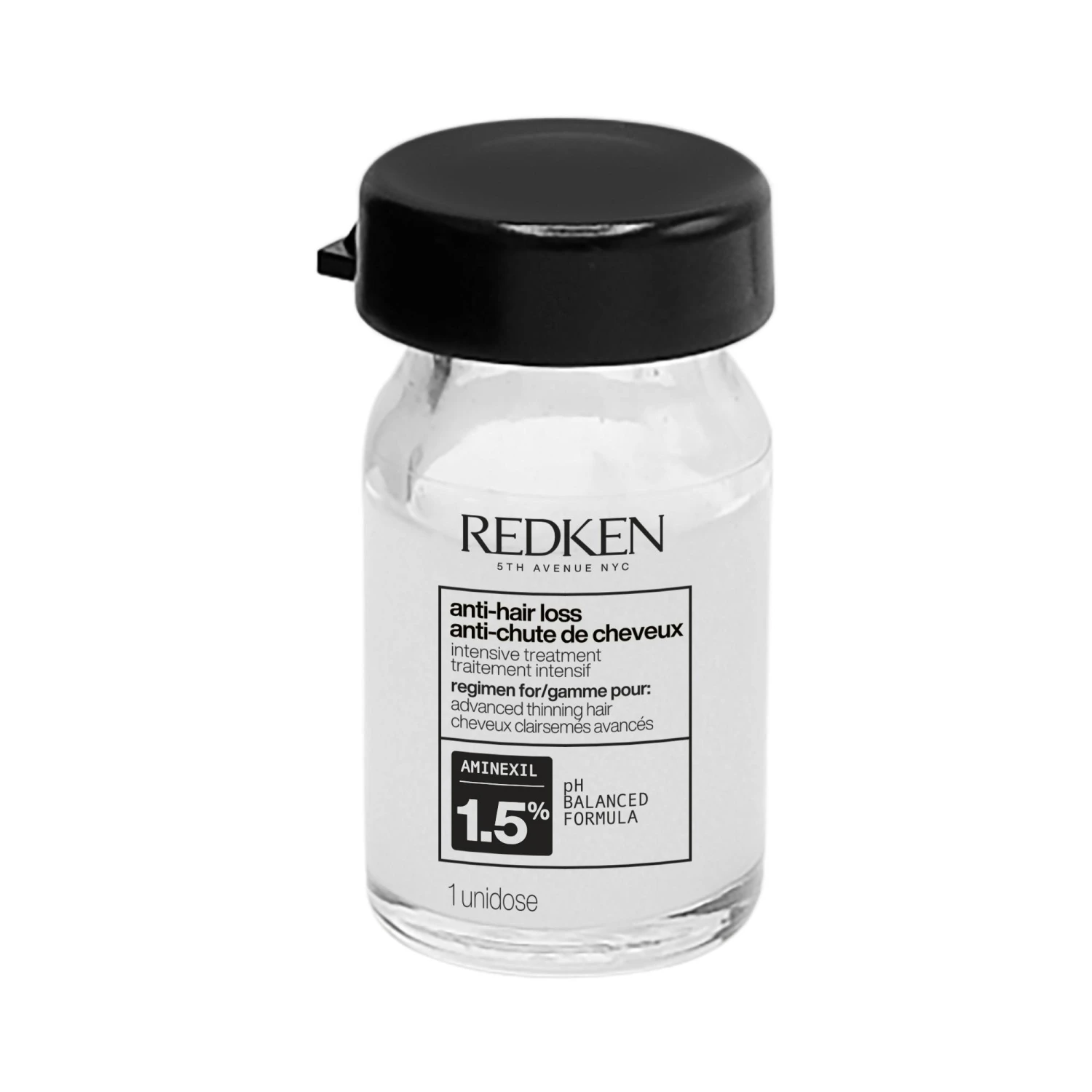 Redken Cerafill Aminexil är en intensiv hårbehandling för att förhindra håravfall. Varje behandling består av 10 små koncentrerade behandlingar som stimulerar hårsäckarna och främjar hårets fyllighet. Aminexil förhindrar ansamling av kollagen runt svansroten och förlänger hårets livslängd. Den unika formulan är baserad på innehållet av vitamin E, Omega-6 och olika multivitaminer. Det rekommenderas att använda behandlingen dagligen för ett optimalt och tillfredsställande resultat. Produkten kan användas för alla hårtyper med olika typer av håravfall.