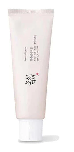 Beauty of Joseon Relief Sun Rice + Probiotics SPF50+ PA++++ är en bredspektrum, mineralisk solkräm som ger skydd mot både UVA- och UVB-strålar. Den innehåller 30% risextrakt och probiotika som lugnar och återfuktar huden samtidigt som den skyddar mot miljöpåverkan.