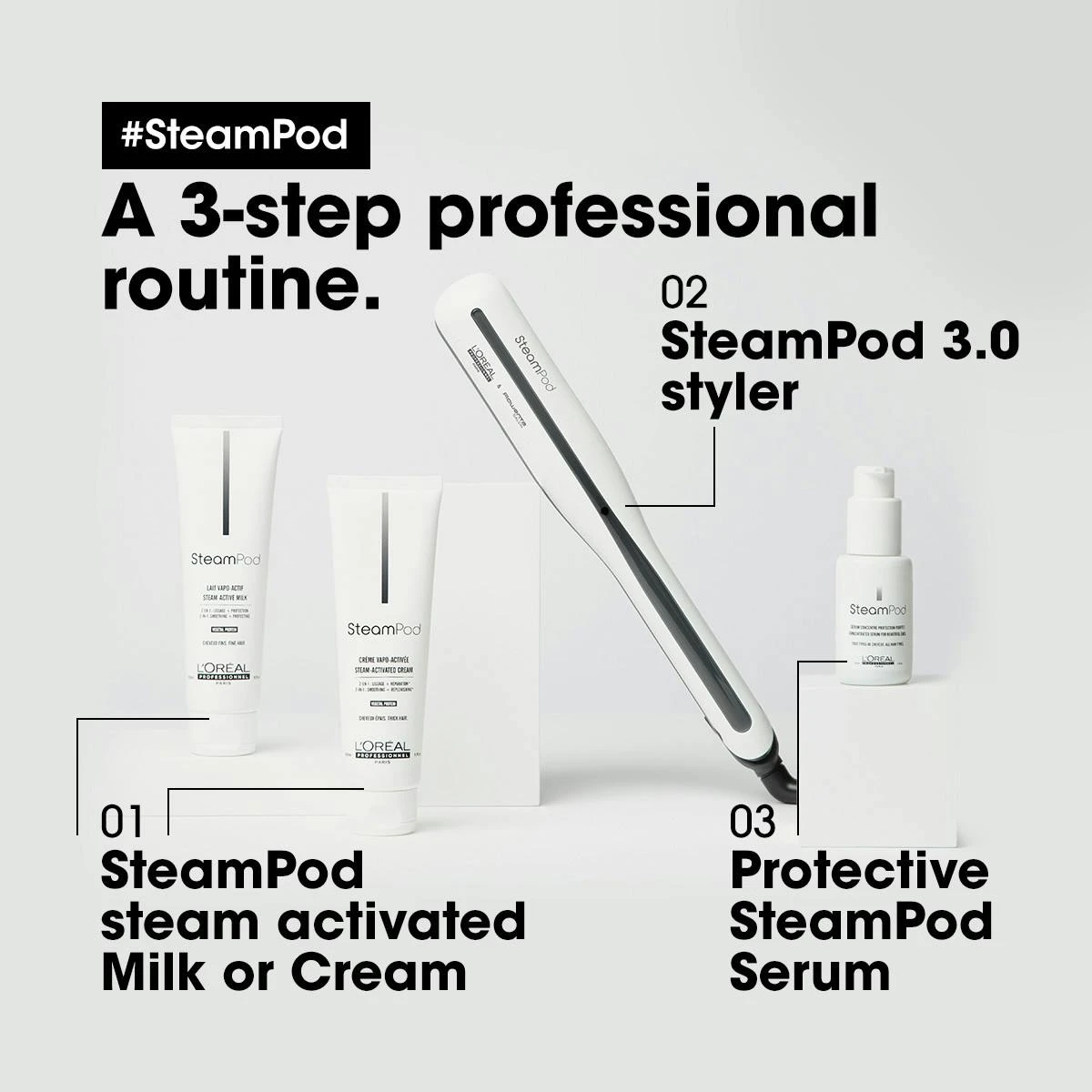 L’Oréal Professionnel Steampod Protective hårserum, som är berikad med stärkande ceramider och en blandning av avokado-, mandel- och aprikosolja, hjälper till att skydda och reparera hår som regelbundet stylas med värme. Den värmeskyddande formulan är utvecklad tillsammans med Steampod plattång. Produkten, som är berikad med stärkande ceramider och en blandning av avokado-, mandel-, och aprikosolja, hjälper till att skydda och reparera hår som regelbundet stylas med värme. Den reparerar och behandlar håret för att lämna varje hårstrå glansfullt, mjukt och välvårdat. Håret kommer att kännas stärkt och reparerat.