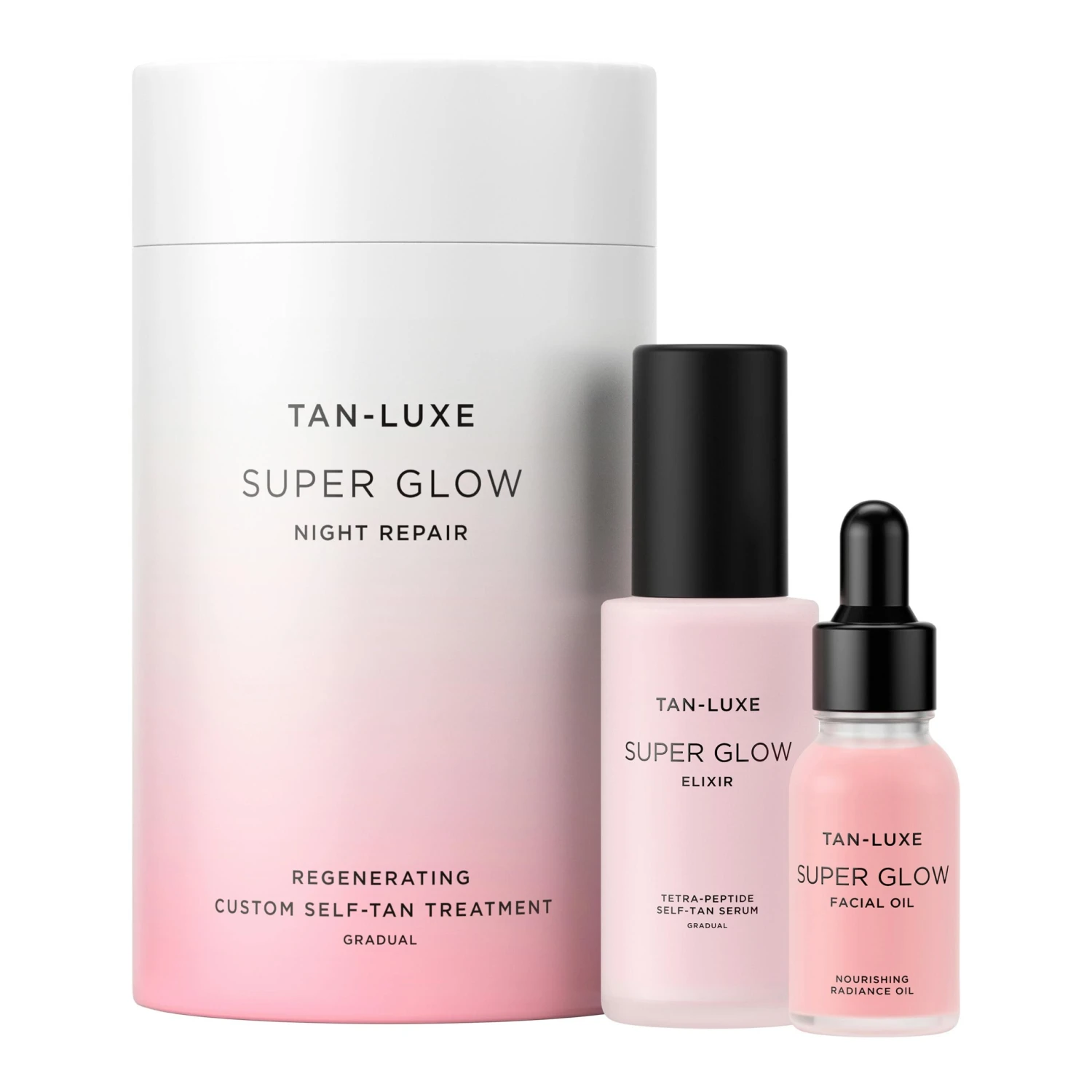 Super Glow Night Repair är en fantastisk presentbox från Tan-Luxe, skräddarsydd för din hud. Denna duo är en underbar cocktail som hjälper till att minimera fina linjer och rynkor samtidigt som du vaknar upp med en vacker, jämn och naturlig lyster nästa morgon.