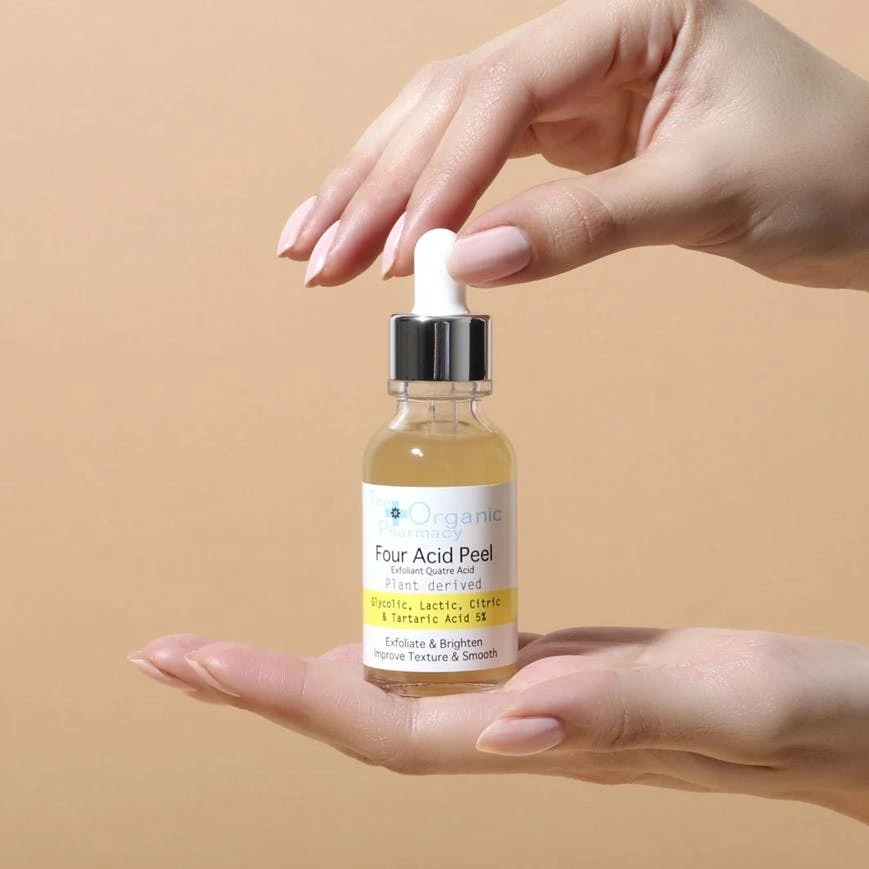 Four Acid Peel är ett kraftfullt, bästsäljande serum med 50% naturliga alfa hydrixylsyror (AHA) från passionsfrukt, citron, vindruva och ananas (som ger glykolsyra, mjölksyra, citronsyra och vinsyra). Detta utstrålningsfrämjande serum exfolierar skonsamt och hjälper med att bekämpa synligheten av pigmentförändringar, förbättra hudens textur samt reducera synligheten av fina linjer, vilket resulterar i en klarare, jämnare och mer hälsosam hud. Så mild att den passar för alla hudtyper och särskilt bra för glåmig och trött hud. Lämplig för veganer.