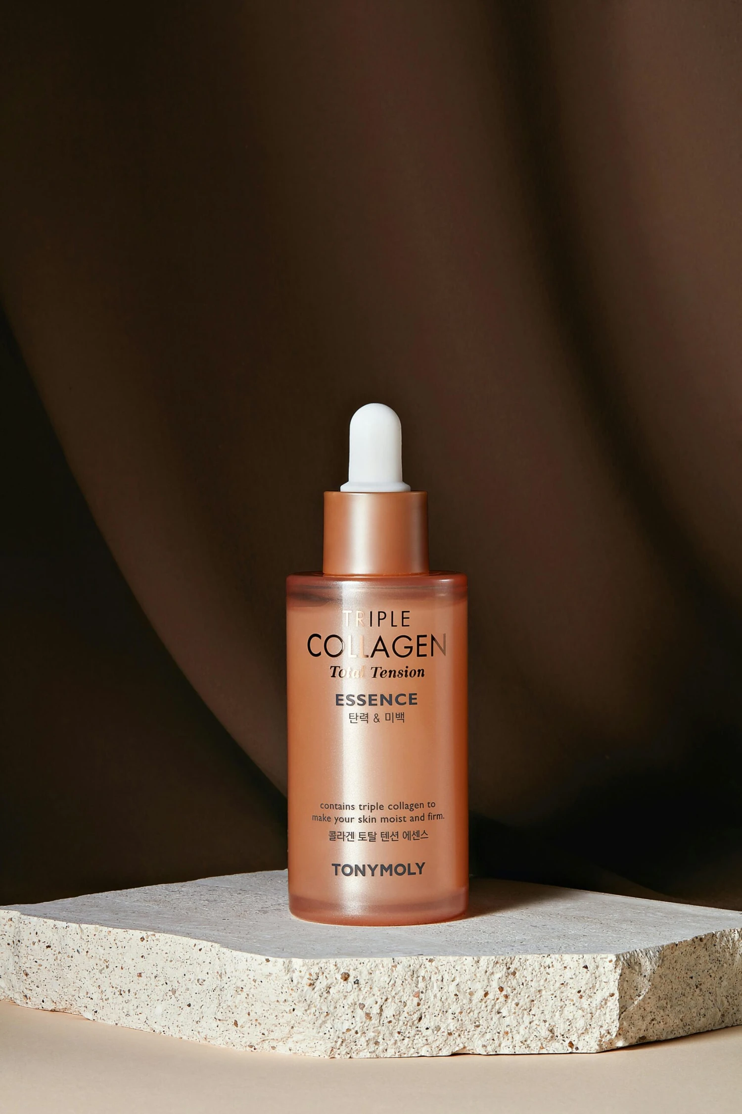 Triple Collagen Total Tension Essence är en uppstramande serum från märket TonyMoly, som är speciellt utvecklad för att förbättra hudens elasticitet. Med sin näringsrika textur arbetar denna serum djupt in i huden för att strama upp, fylla och återfukta den.