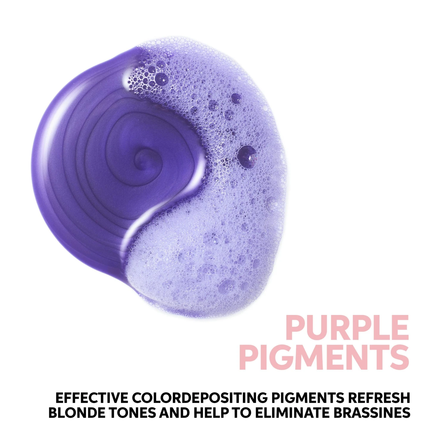 Fräschar upp och bibehåller färgen levande och blonderade slingor ljusa. Detta violetta schampo motverkar att färgat och naturligt blonda hårstrå att gulna samtidigt som det gör håret mjukt och följsamt.